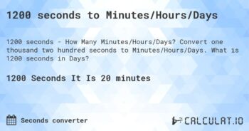 Answer: Convert 1200 Seconds To Minutes: Quick Calculation Guide